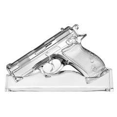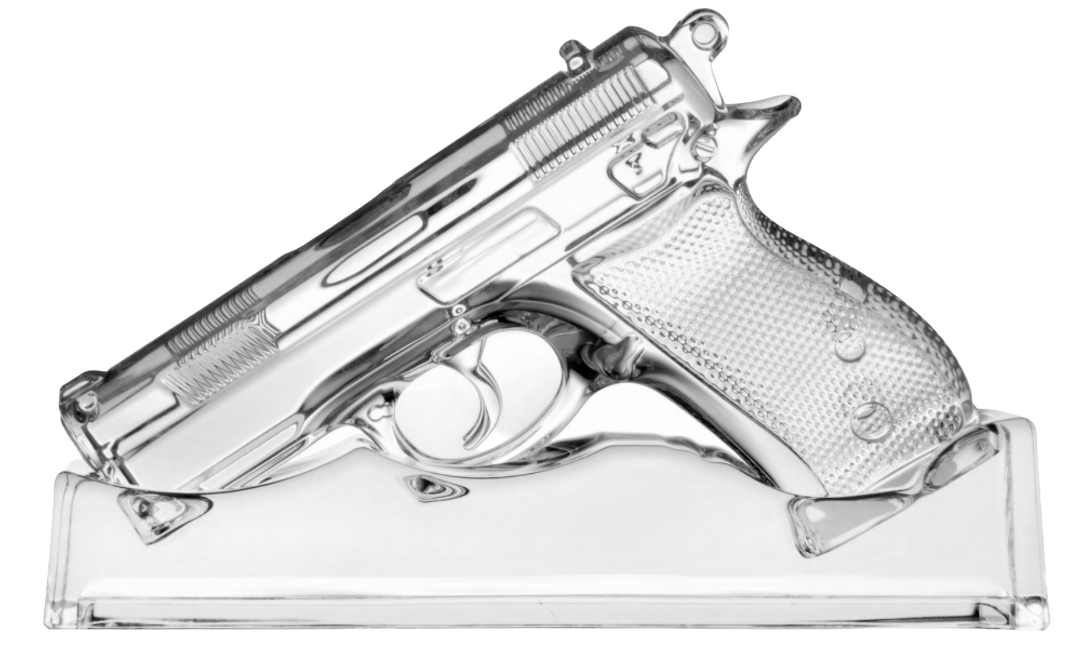 The Crystal Stand: Deep-etched using traditional techniques to create refractive patterns that cast shifting shadows in natural light. Finished with the same 22-karat liquid gold.