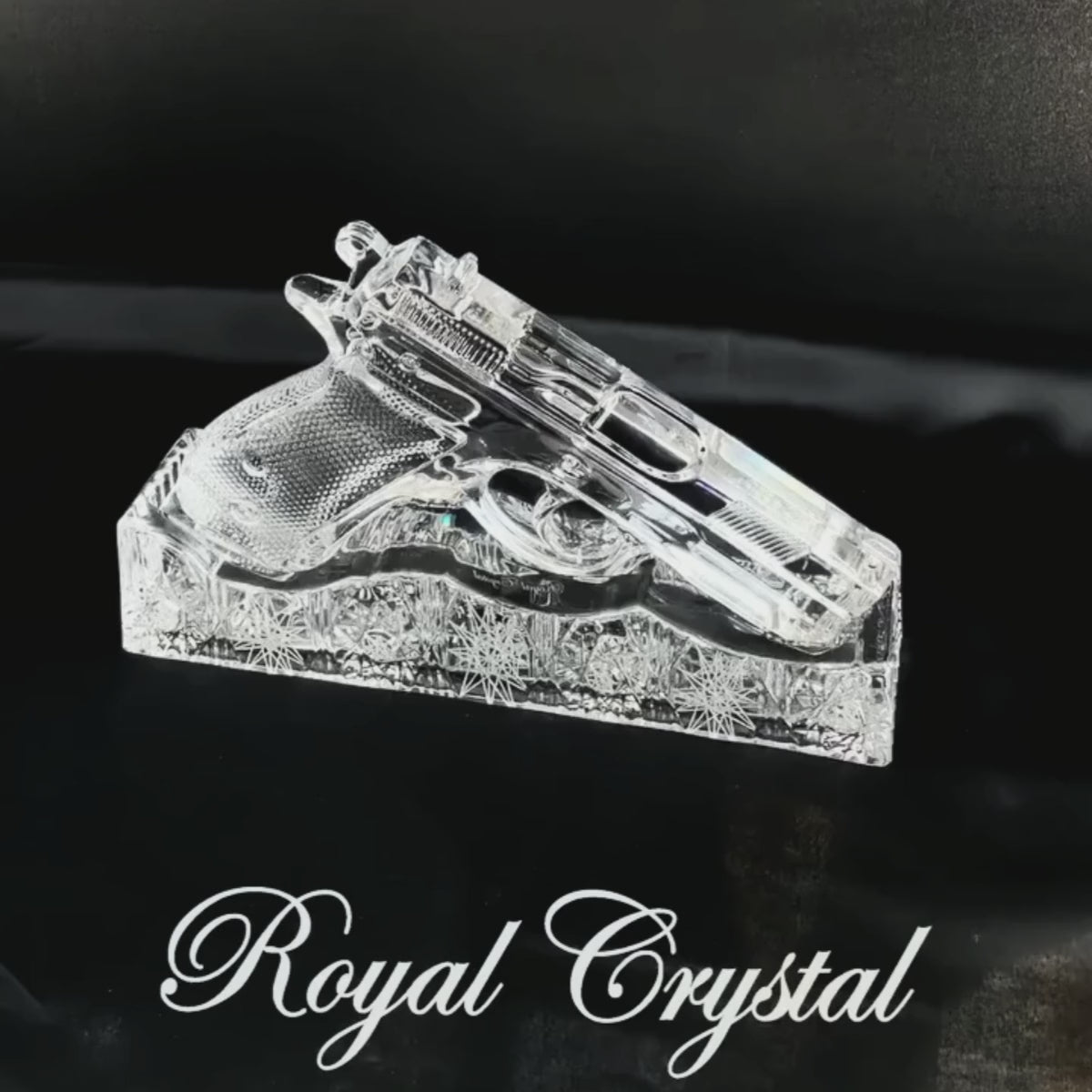 It does not merely sit; it commands. The Sovereign Crystal Pistol is a study in contradictions—the dangerous silhouette of a firearm rendered in the fragile, breathtaking brilliance of 24% Lead Crystal. It is a centerpiece designed for the man who understands that true power is found in the details.